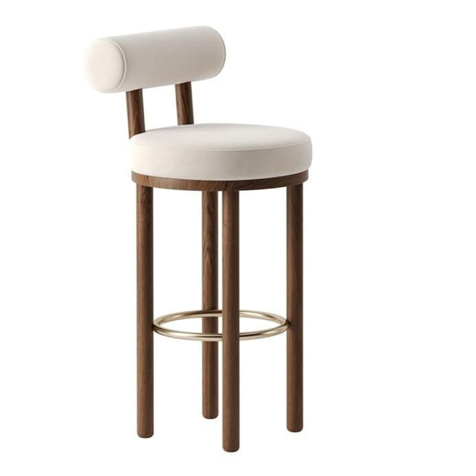 Teak Wood Luxury Bar Stool with Round Cushion Seat