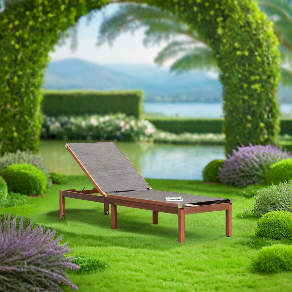 Teak Wood Miami Lounger Brown Outdoor Sun Lounger with Weather Resistant Fabric Hotel Exterior Use Cushions Included