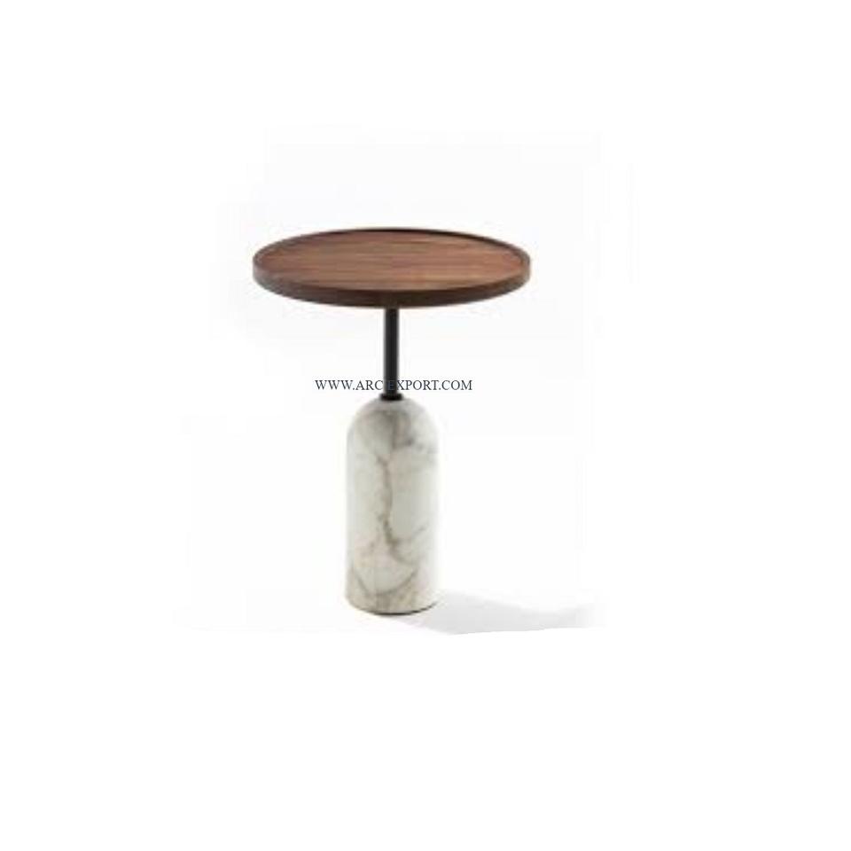 Teak Wood Round Shape Coffee Side Table With Marble Base Deluxe Quality Large Size Home and Wedding Handmade Side Coffee Table