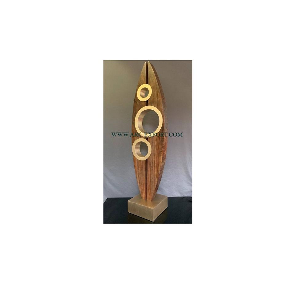 Teak Wooden Tabletop Statue and Sculpture Brown Color Fancy Look Pattern With Designer Base Square Shape Decorative Accents