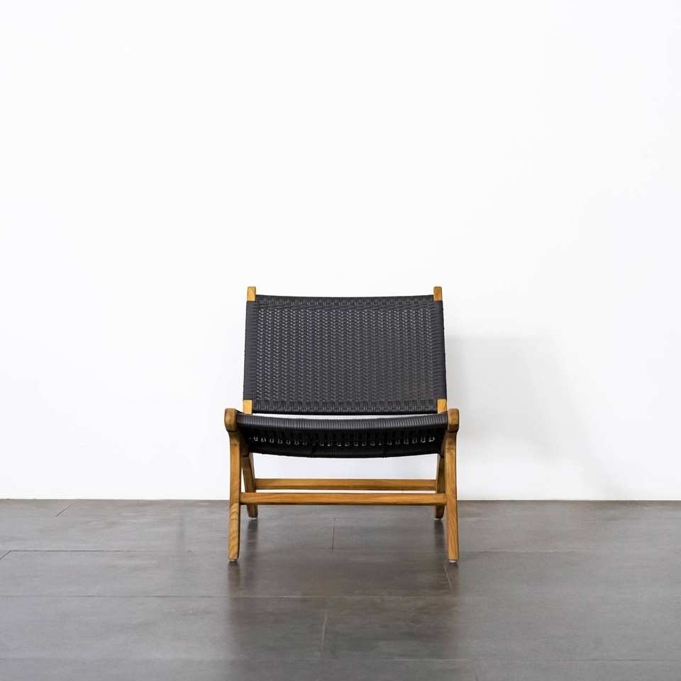 Teak wood lounge chair with synthetic rattan weaving finishing color
