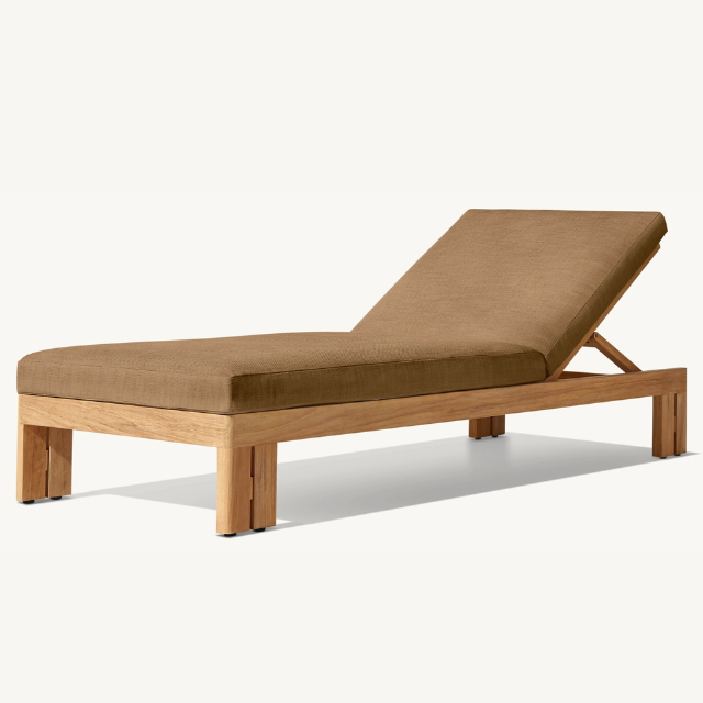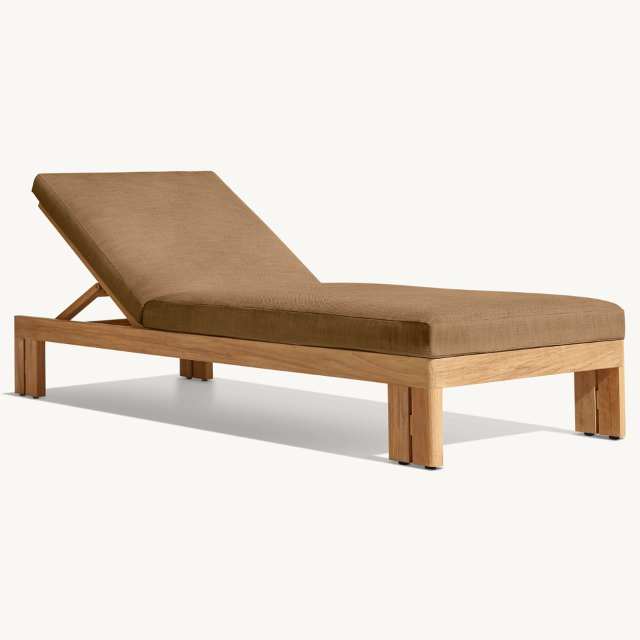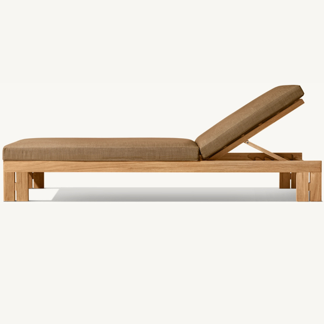 Teak wood sun lounger for outdoor use for one person in a modern style with soft and durable cushions