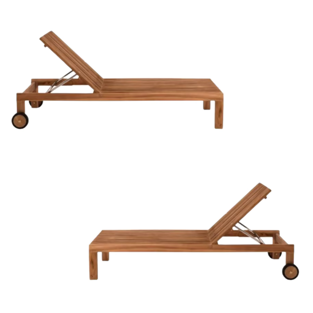 Teak Wood Sun Lounger for Relaxing and Enjoying the Breeze Outside, Equipped with Wheels with a Modern Design