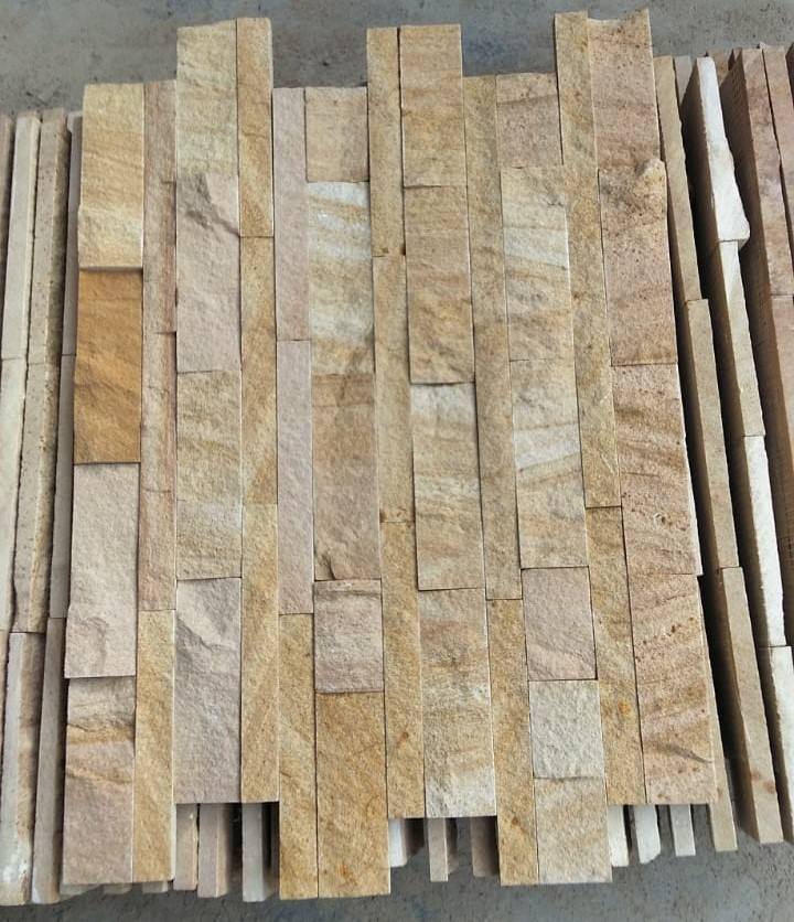Teakwood Yellow Sandstone Ledger Panels Top Quality Decorative Wall Cladding interior exterior Split face Stacked Culture Stones