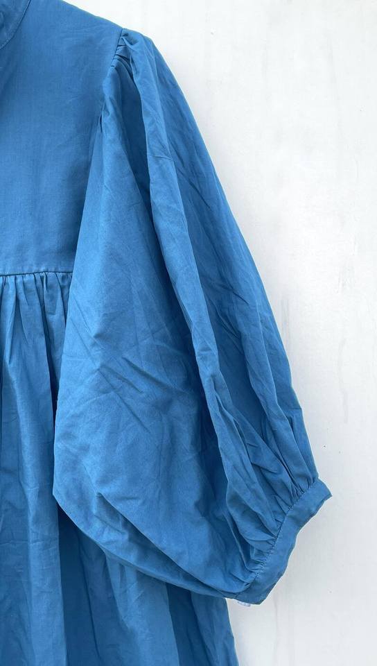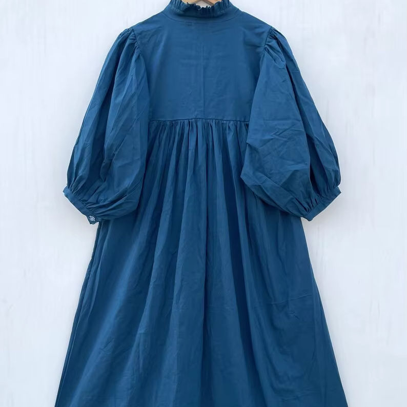 Teal Long Maxi Dress Boho V-Neckline Dress 3/4 Sleeve Button Front Maxi Flowing Cotton Dress Handmade Casual Summer Outfit