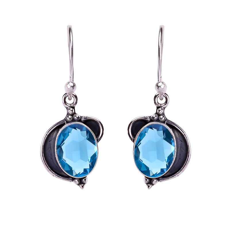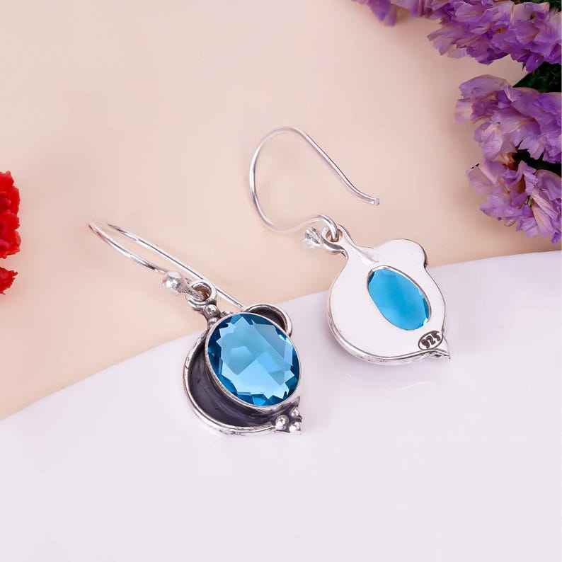 Teal Tourmaline Gemstone Oval Shape Earrings 925 Sterling Silver Vintage Style Handmade Jewelry Gift For Women