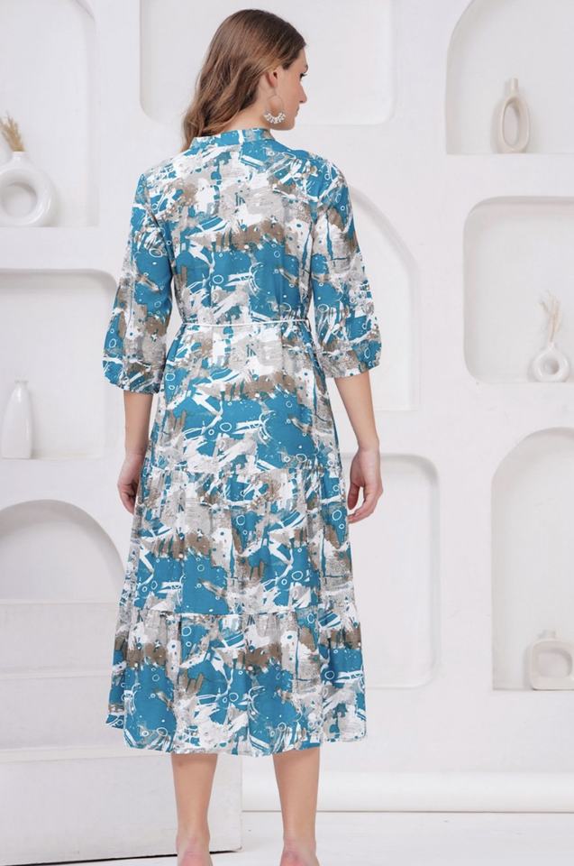 Teal printed kurti dress blend contemporary charm with timeless ethnic grace abstract and floral-inspired motifs