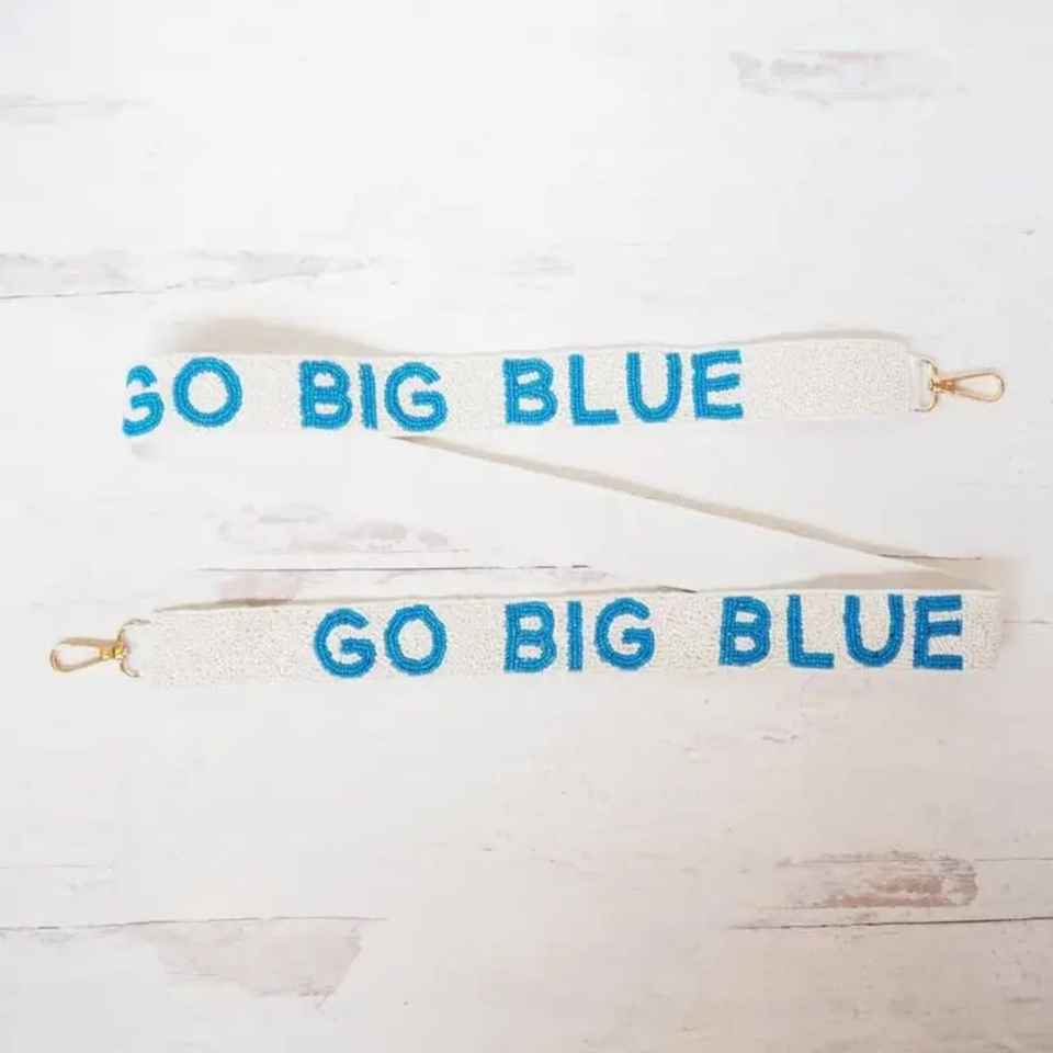 Team Spirit Go Big Blue Beaded Embroidery Bag Strap White Handmade Seed Bead Crossbody Purse Belt Replacement Accessories
