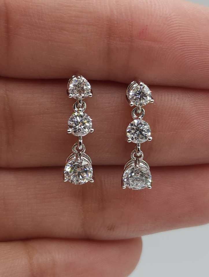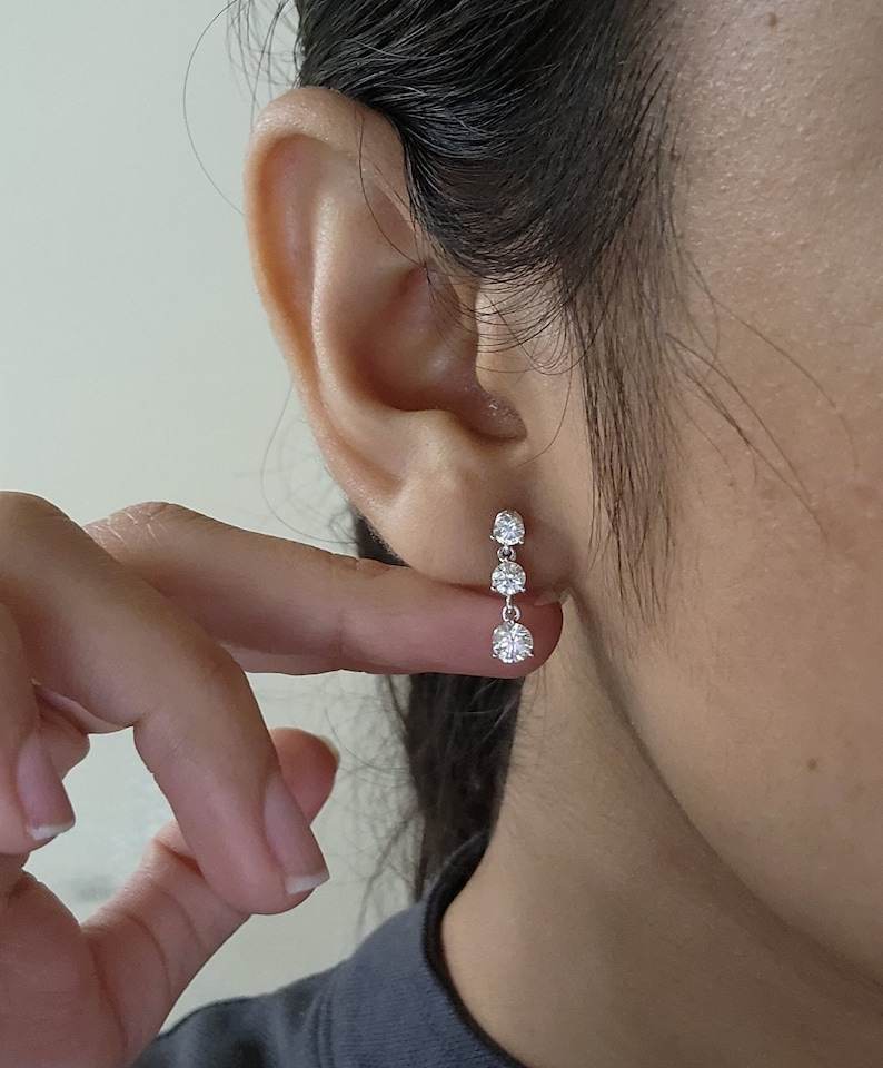 Teardrop Round Cut Moissanite Diamond Drop Earrings 925 Silver Ethical Wedding Statement Bridal Jewelry for Gift