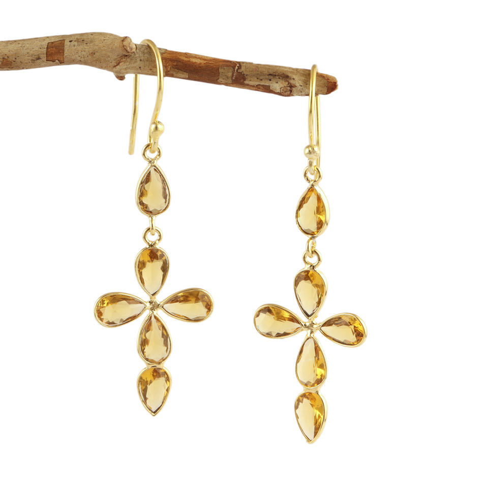 Teardrop citrine quartz dangle earring dainty multi-gemstone bezel setting earring brass fashion wholesale jewelry for women