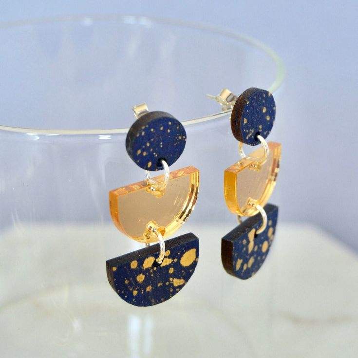Teardrop resin earrings with antique bronze metal hooks featuring gold foil flakes for a touch of luxury in casual wear