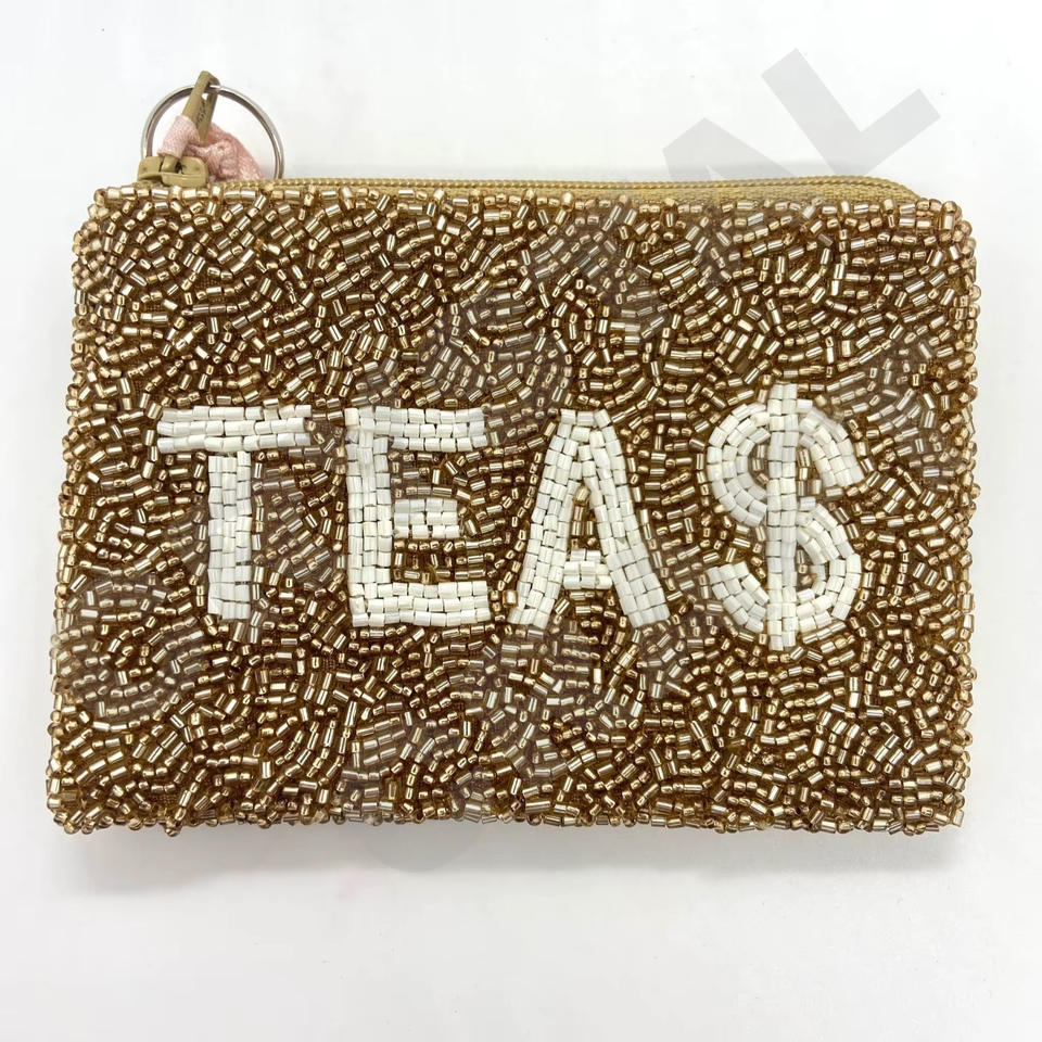 Teas Design Customized Seed Beaded Coin Pouch Wallet Beautiful Coin Purse with Fashionable Accessory Features