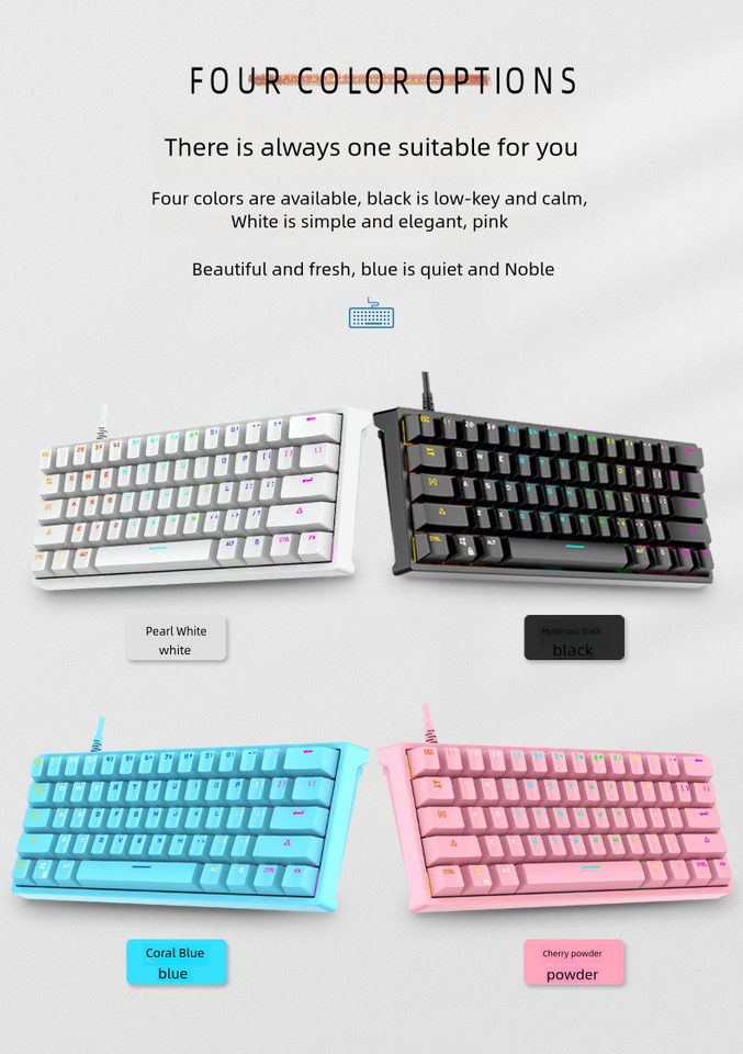 Teclados Gaming Blanco Teclados Para Computadora 61 Keys Ultra Compact Wired Mechanical Gaming Keyboard