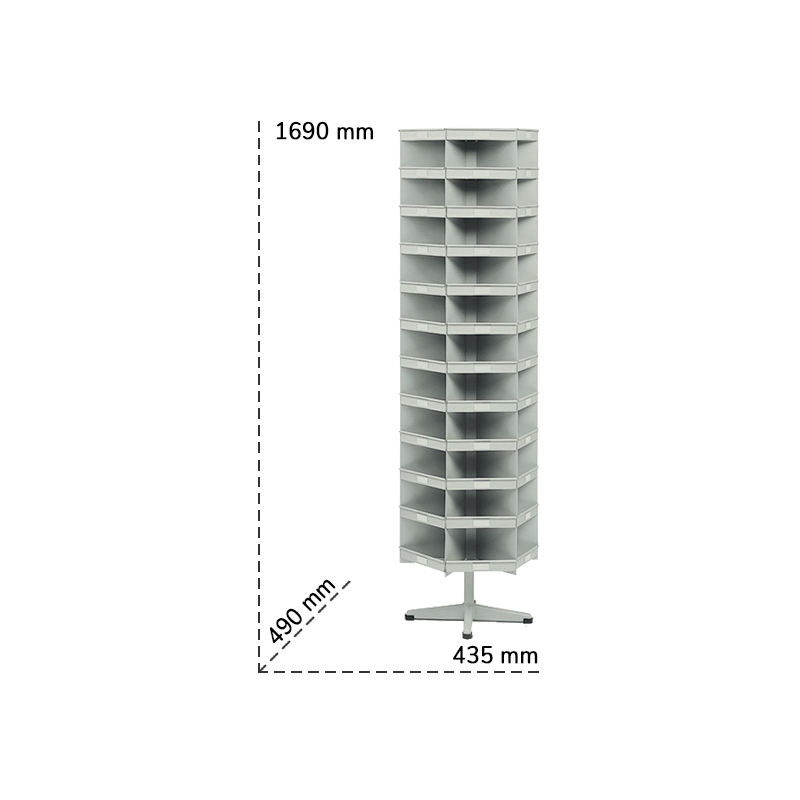 Tecnotelai 435x490x1690mm rotating shelf for small parts with 66+6 metal compartments