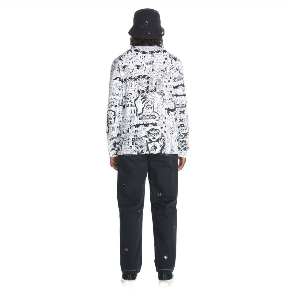 Teddy Fresh All-Over Graphic Sketch White Shirt Unique and Trendy Artistic Print Shirt for Casual Wear and Street Style Fashion