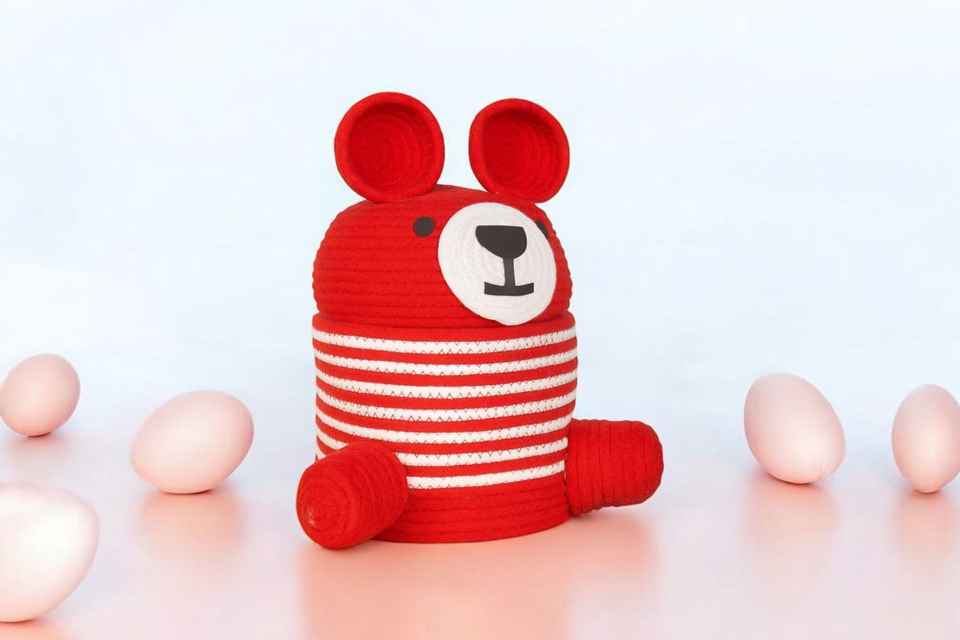 Teddy Shaped Baby Nursery Hamper Woven Cotton Rope Toy Basket with Handles for Kids Room Storage