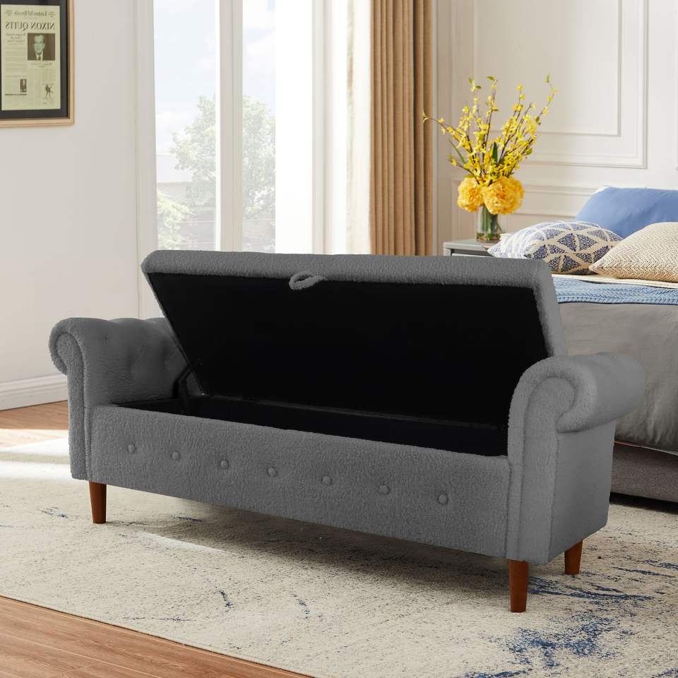 Teddy Velvet Rectangular Sofa Stool Multifunctional Living Room Furniture Storage