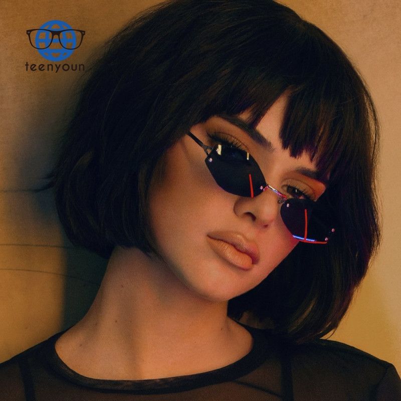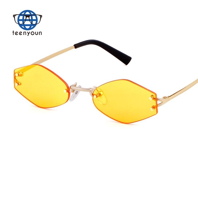 Teenyoun Rimless Oval Sunglasses Women's Clear Red Lens Shades Tinted Sun Glasses Mens Narrow Glasses 90'S Sunglass