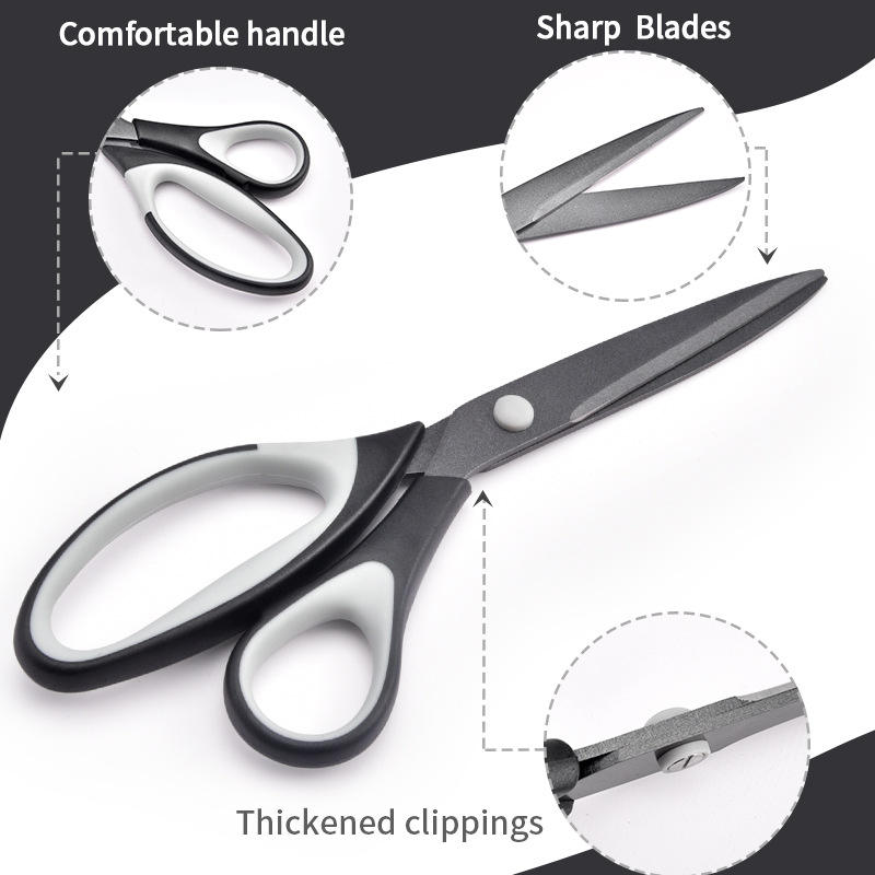 Teflon Coated Household Scissors 3 Piece Set Stainless Steel Sharp Fabric Paper Cutting Home Office Use Blackish Gray Pinkish