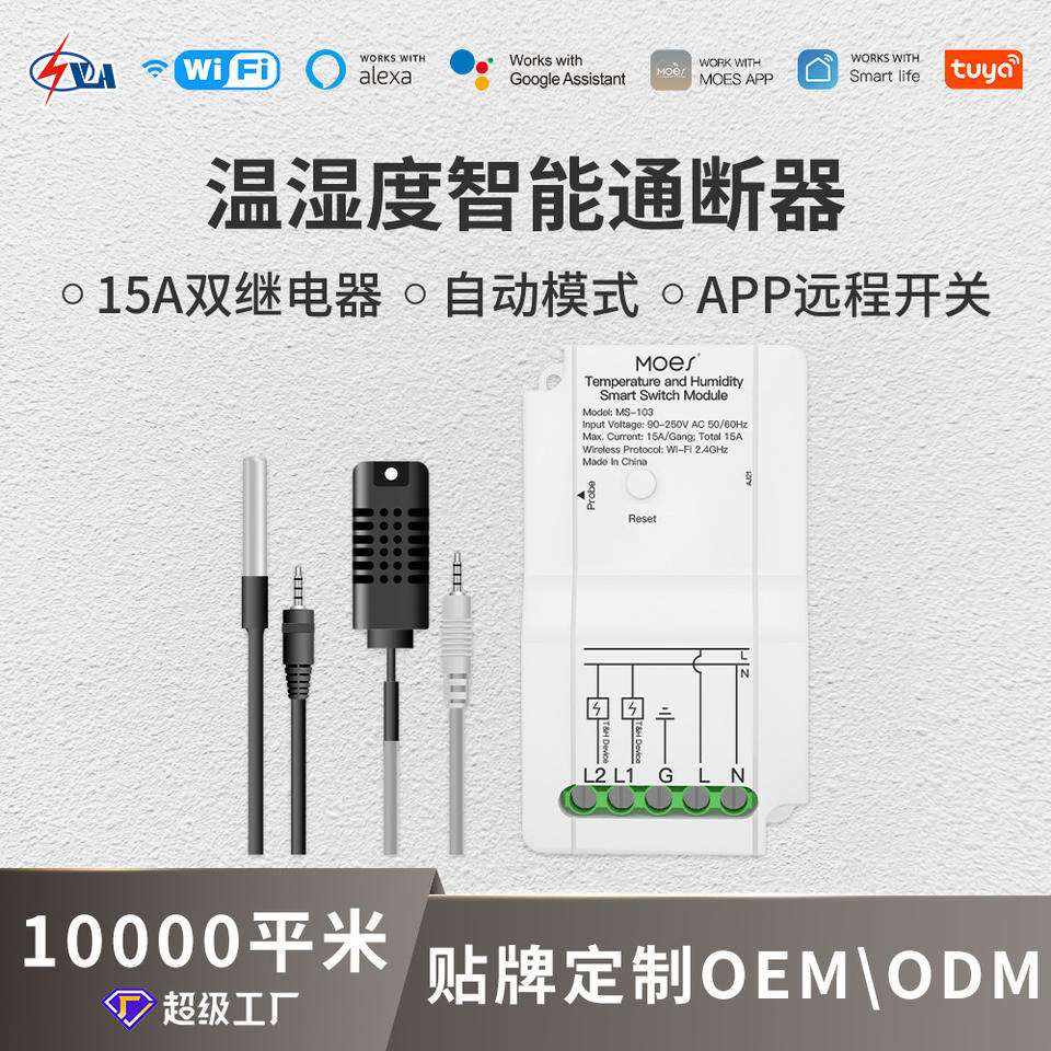 Temperature And Humidity Smart Switch Module Wi Fi 15A AC 90 250V With External Probe For Remote Control