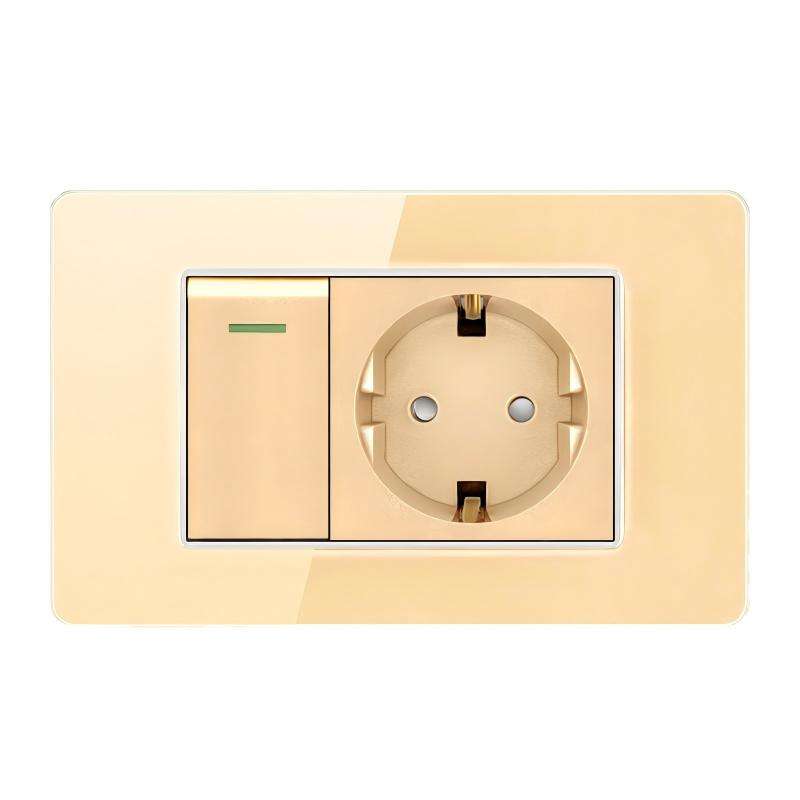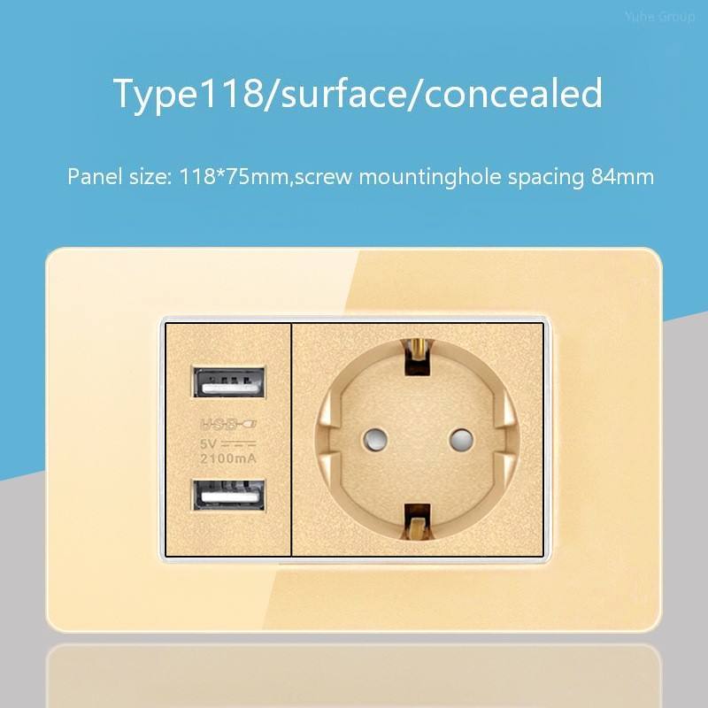 Tempered Glass European Standard Wall Socket with Double USB C-Type Touch Panel Light Switch and Three Power Supplies