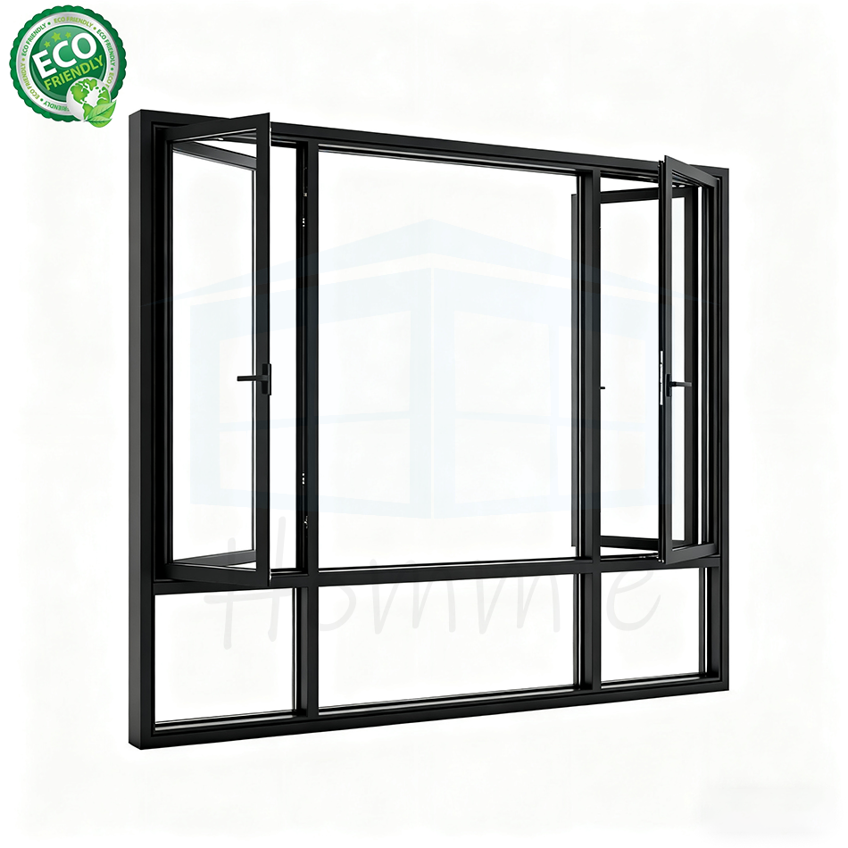 Tempered Glass Swing Window Aluminum Folding Servery Double Glazed Windows