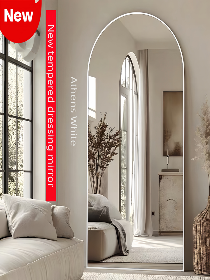 Tempered GlassFrench arched dressing mirror, household arch full-length mirror, girls' bedroom fitting floor mirror