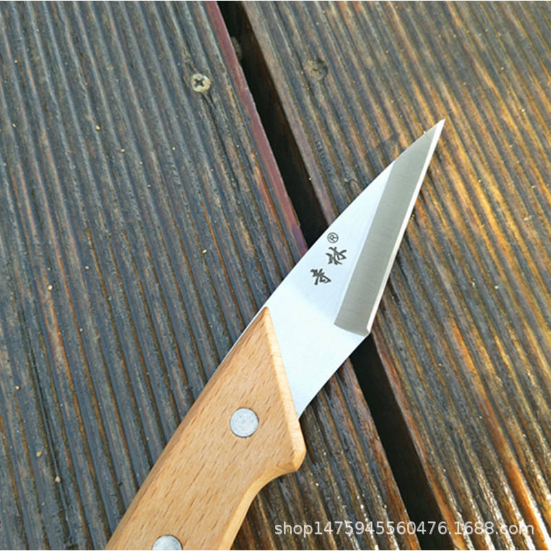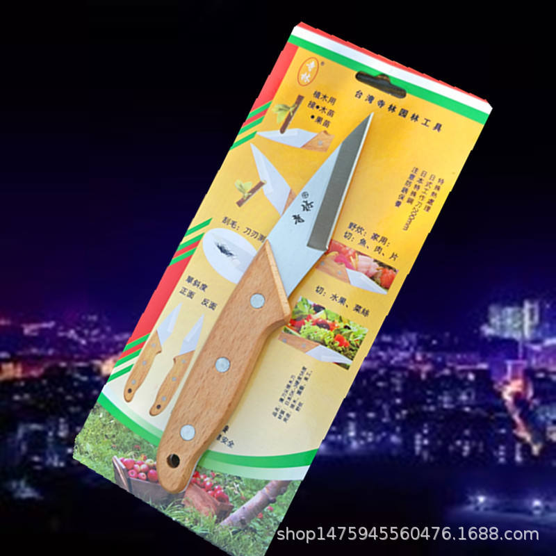 Temple Forest Grafting Knife Wooden Handle Carbon Steel Fixed Blade Straight Edge 230g Gardening Tool