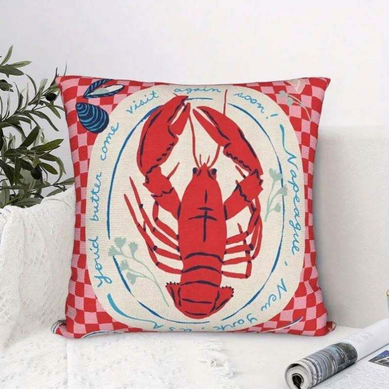 Temu1 Piece Lobster and Bowl Printing Throw Pillow Sofa Living Room Cushion Cover Home Decoration Pillowcase