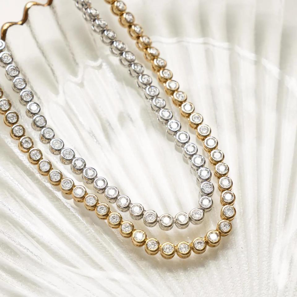 Tennis 925 Silver Necklace Choker Round Cut Moissanite Diamond Bezel Set Sparkling Luxury Elegant Daily Wear Gift