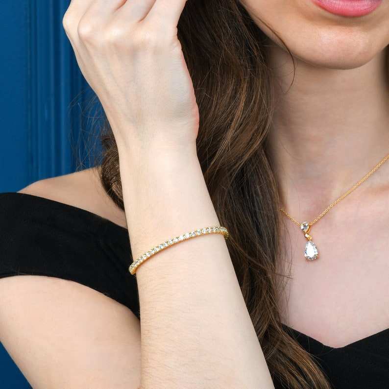 Tennis Bracelet With 3mm White Cubic Zirconia For Women 925 Sterling Silver 14K Gold Plated Bracelet