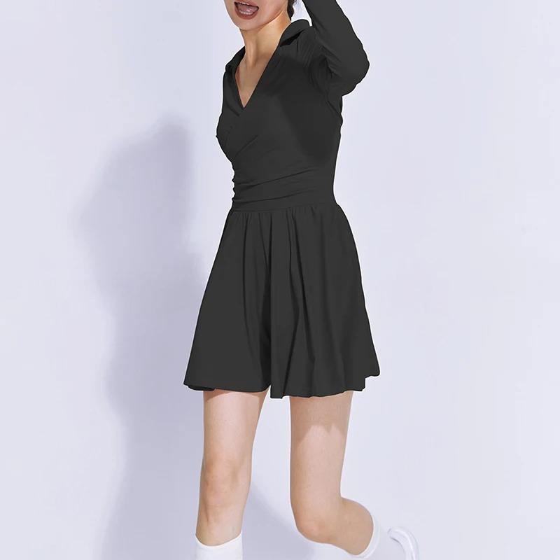 Tennis Golf Dresses with Safety Pants Two Pieces Women's Short Sleeve Turn Down Collar Badminton Sports Training Dress