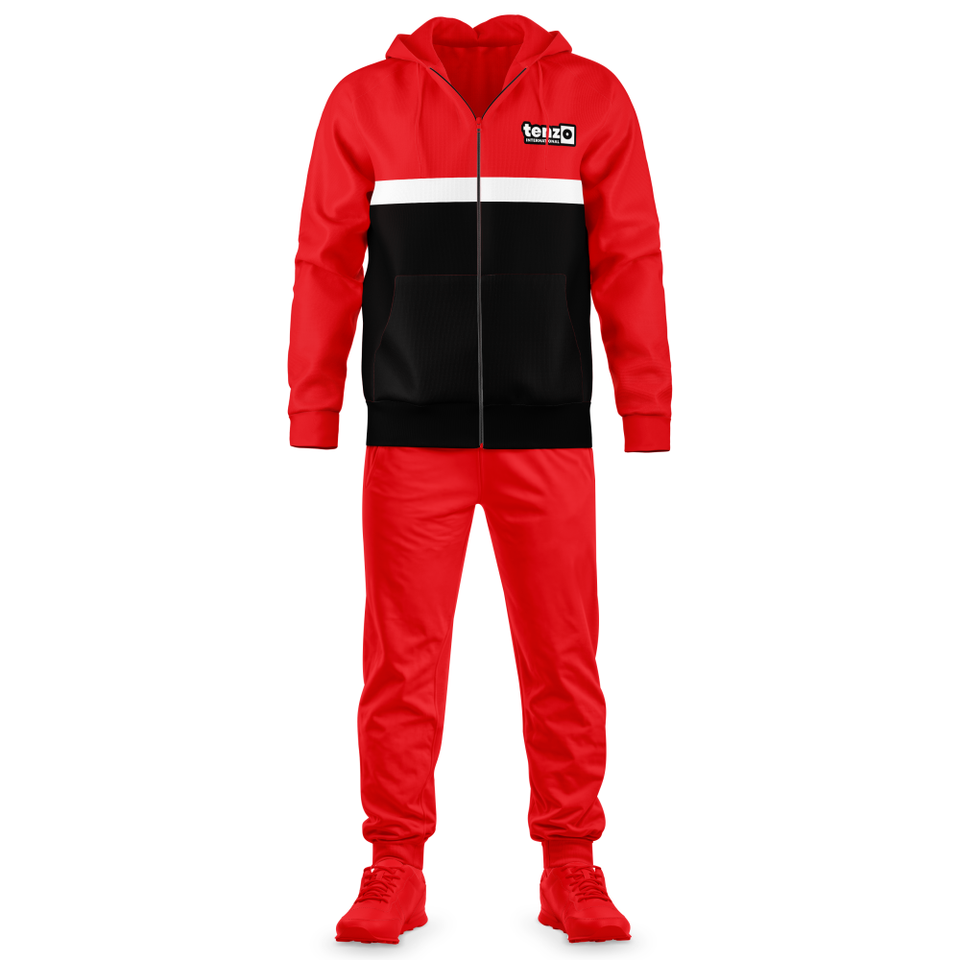 Tenzo Intl Wholesale Men Red Winter Streetwear Sports Tracksuit Set Hooded Zipper Jacket Jogger Pants OEM ODM Factory Supply