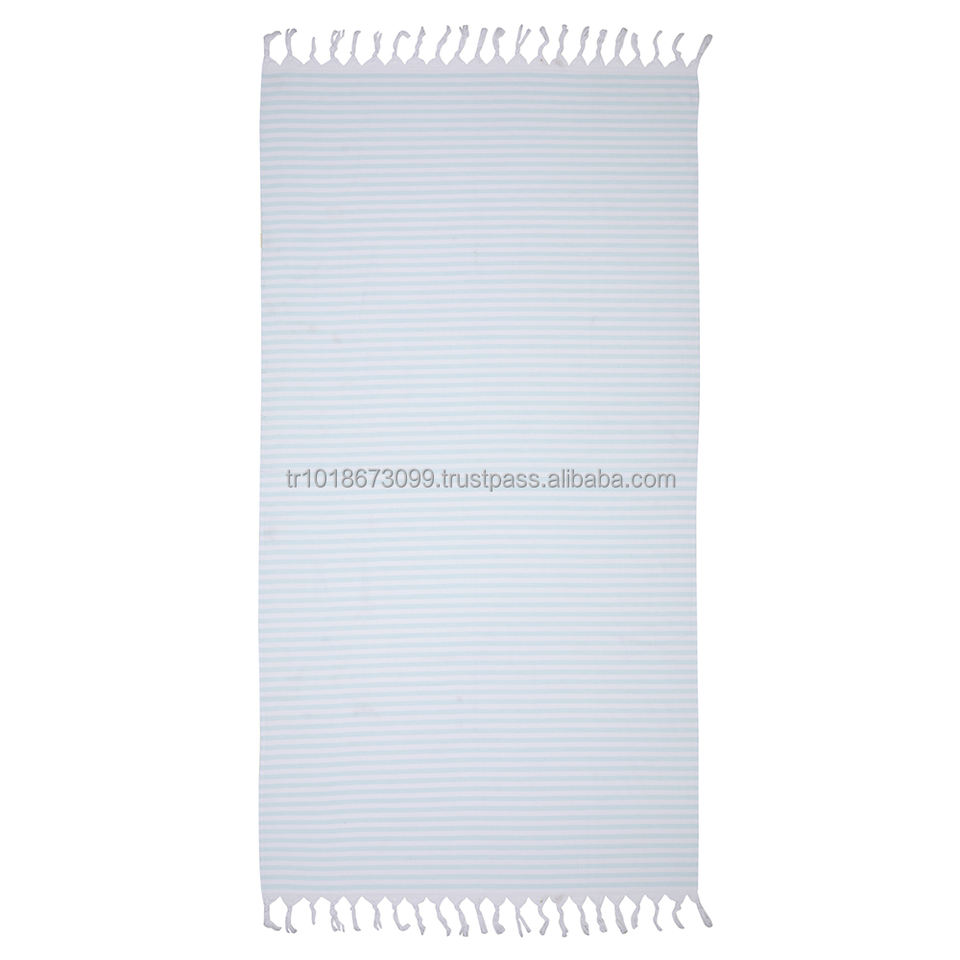Terry Backed Turkish Towel Peshtemal Fouta Wholesale Pestemal Soft OEM Customized 100 Cotton Thick Stripes White Base Royal