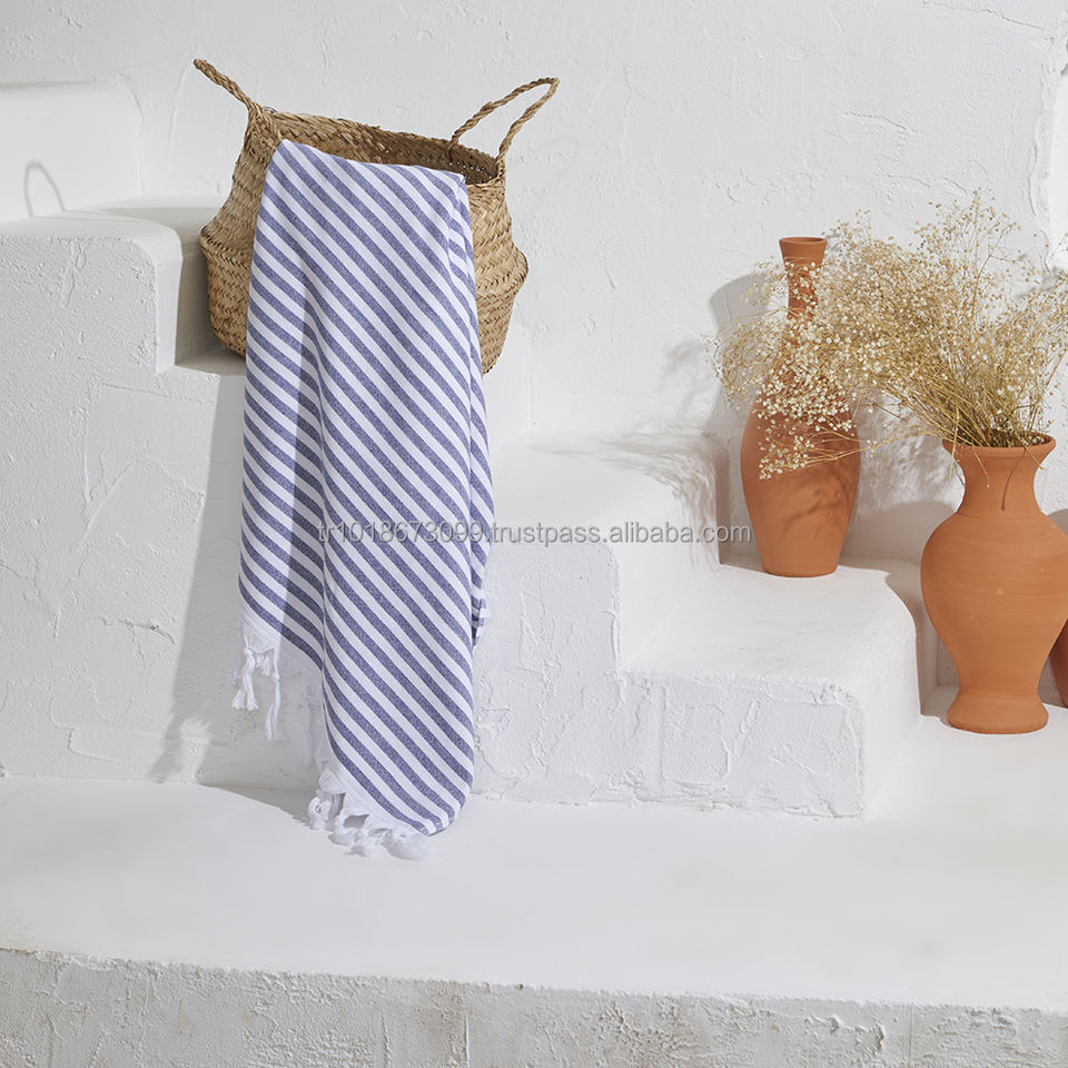 Terry Backed Turkish Towel Peshtemal Fouta Wholesale Pestemal Soft OEM Customized 100 Cotton Thick Stripes White Base Royal