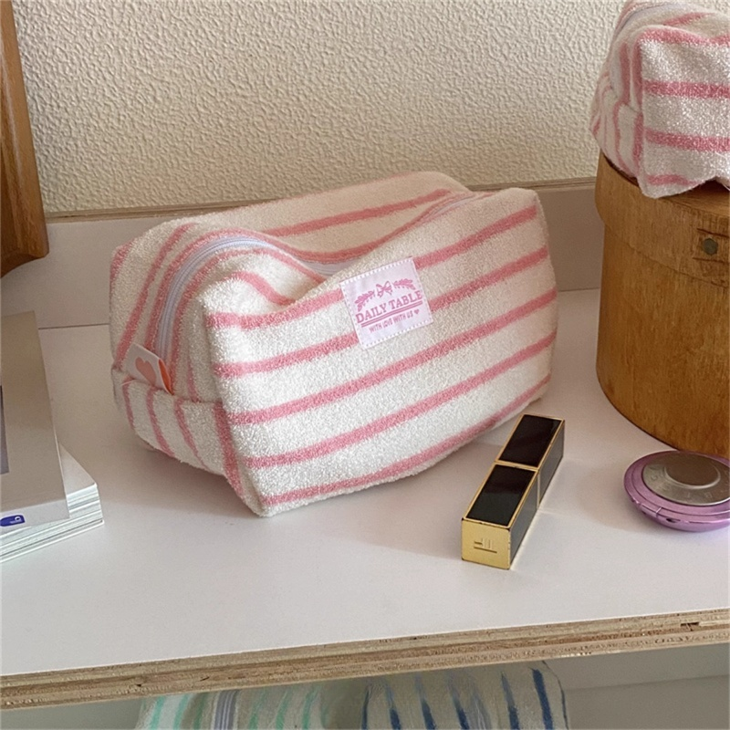 Terry Cloth Cosmetic Bag Large Capacity Makeup Bags Fashion Portable Toiletry Bag for Women Men Travel Beach Outdoor