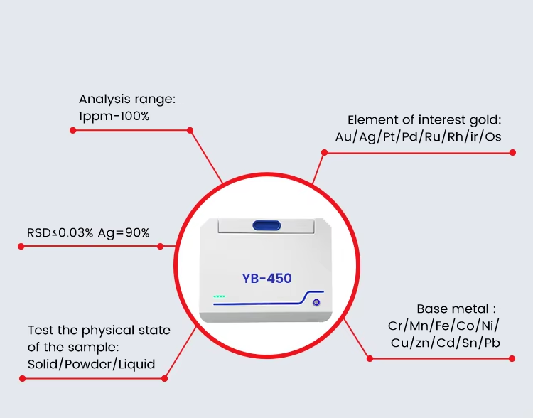 Testing Machine for Gold YB-450 Precious Metals Analyzer High-Precision Fluorescence Spectrometer XRF Non-Destructive