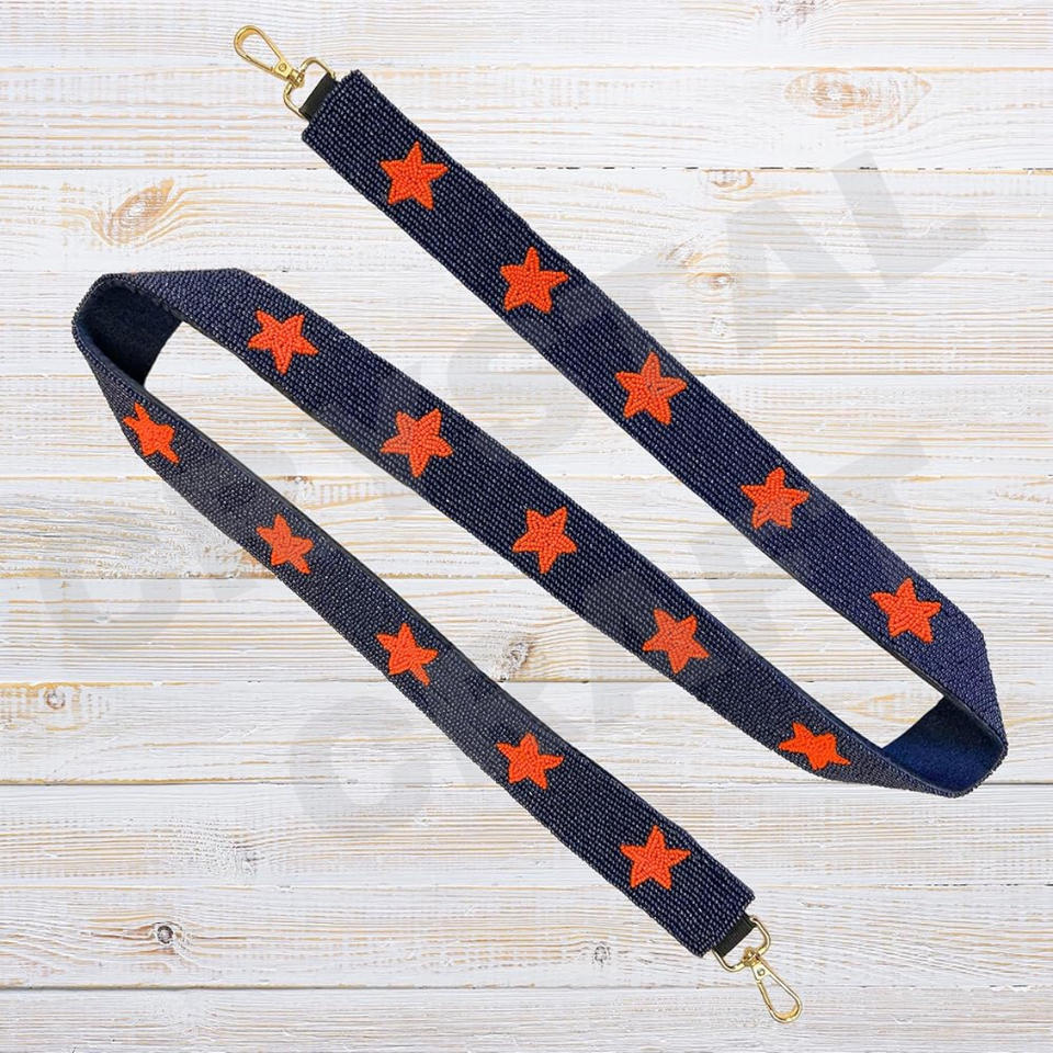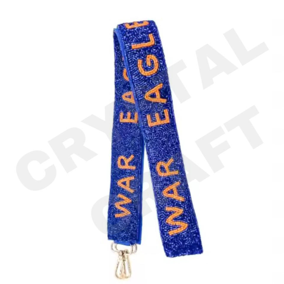 Texas Customized 'Hook Em Horns' Beaded Purse Strap White Gold Seed Bead Bag Straps Fashionable Accessory