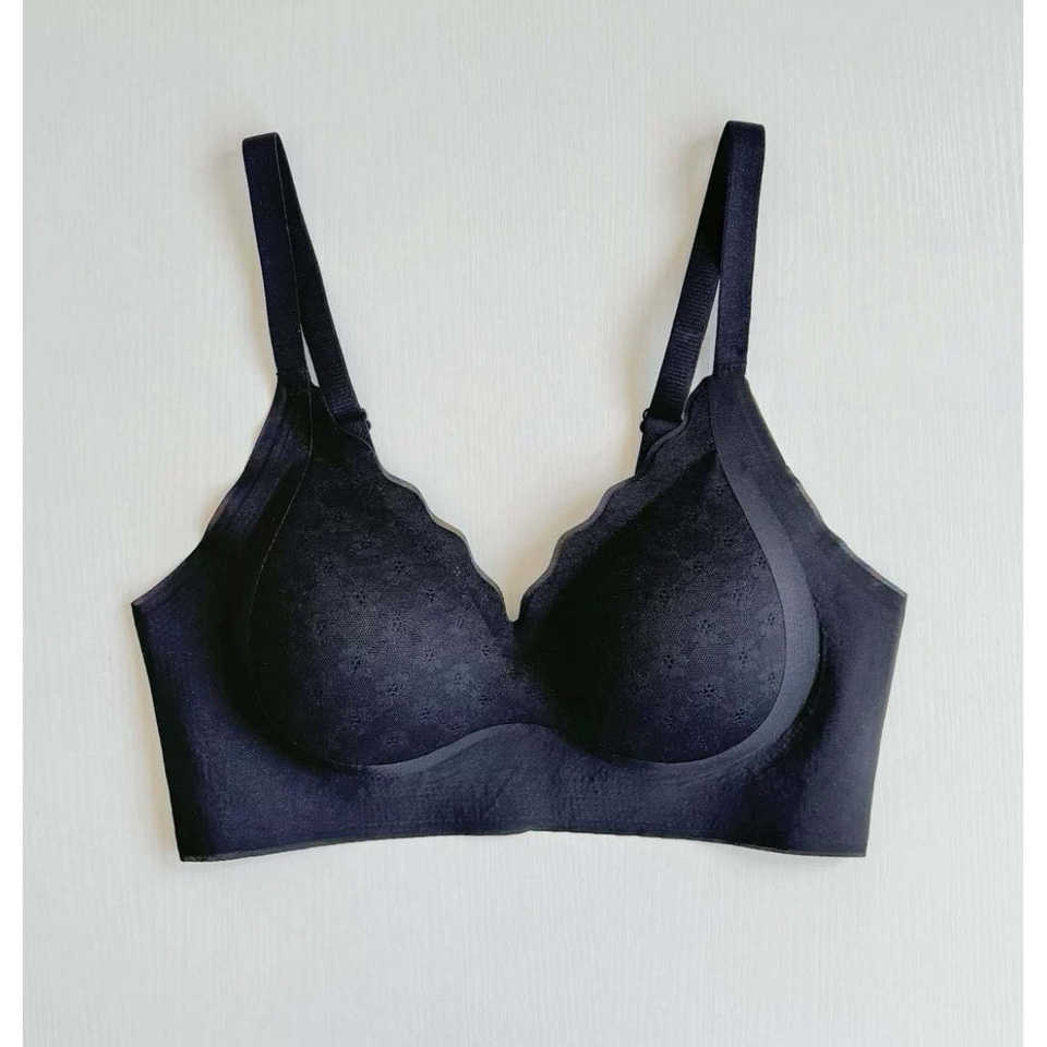 Design:Wire-free silhouette with scalloped lace edge and light molded cups