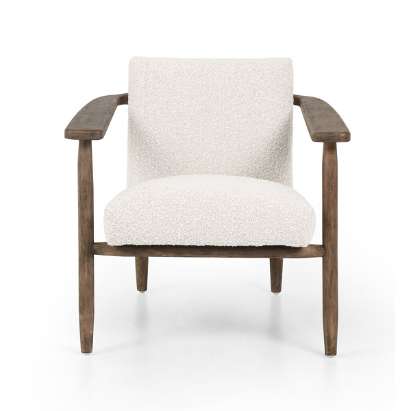 HMS 24\" Ivory Brown Fabric Arm Chair Japanese-Scandinavian Accent Chair for Home Office or Living Room Indoor Home Furniture