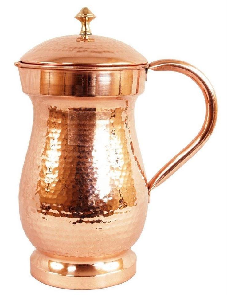 Textured Hammered Copper Jug With Glossy Lid And Curved Handle For Traditional Home Hydration Style