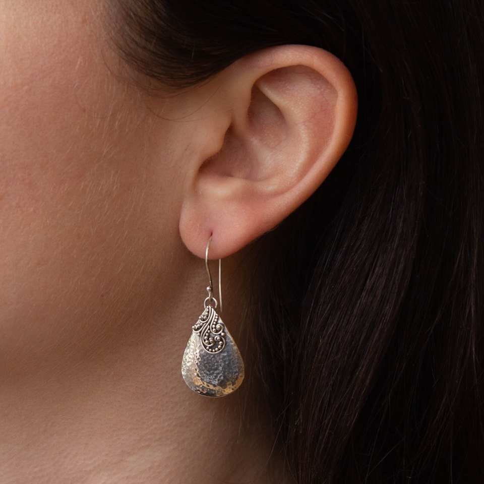 Textured Hammered Silver Filigree Drop Earrings With Pear Shape Silver Plating Crafted From 925 Sterling Silver Trendy Earrings