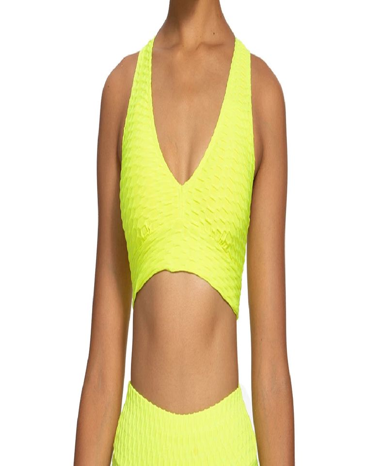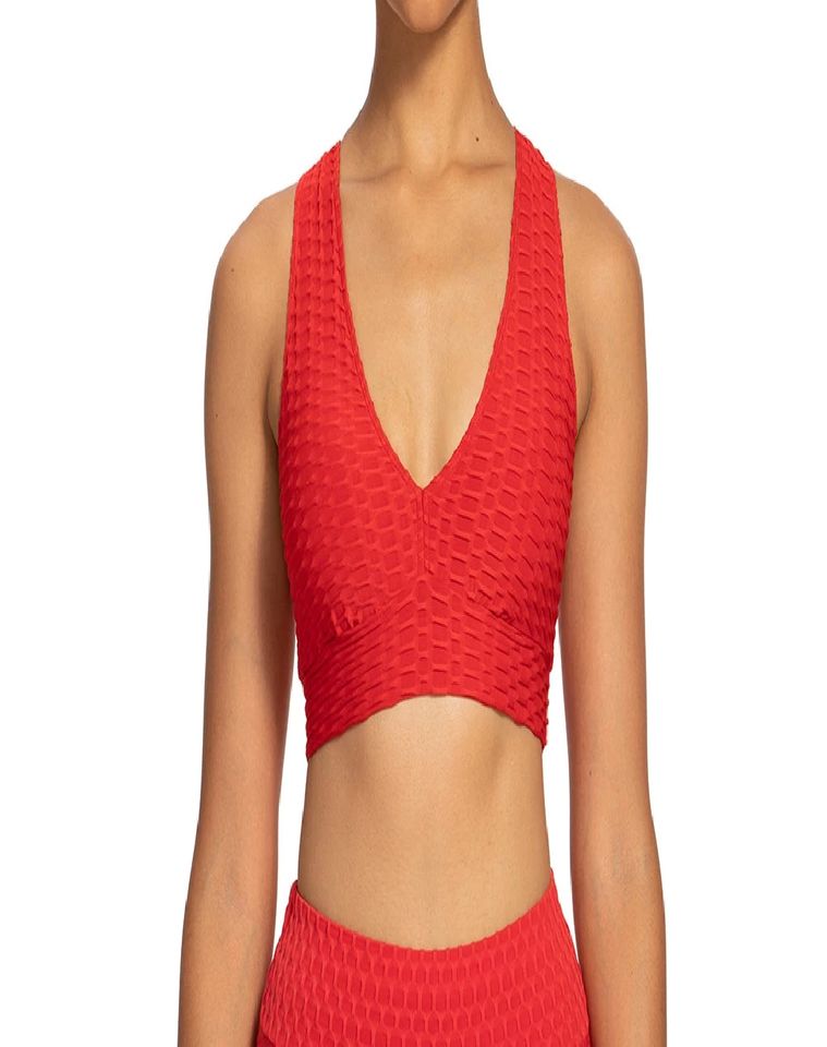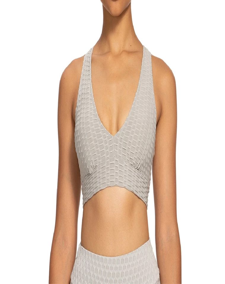 Textured Honeycomb Yoga Set Ruched V-Neck Sports Bra Bubble Fabric Activewear Gym Top High-Elastic Workout Gear Custom Fitness