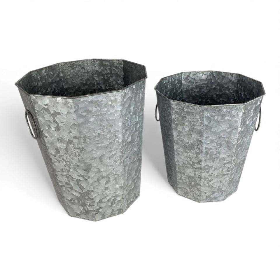 Textured Oval Galvanized Metal Planters Rustic Vintage Flower Pots For Indoor Home Decor & Outdoor Garden Styling