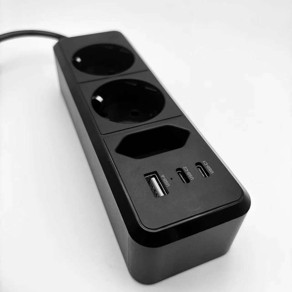 Thailand EU 3-outlet 3-way Power Strip Surge Protector Extension Socket with USB a and C Ports CE for