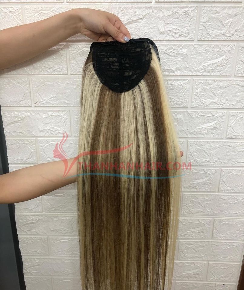 Thanh Supplier Remy Virgin Color Natural Straight Ponytail 100% Human Hair Cuticle Aligned Machine Double Weft Hair Extension