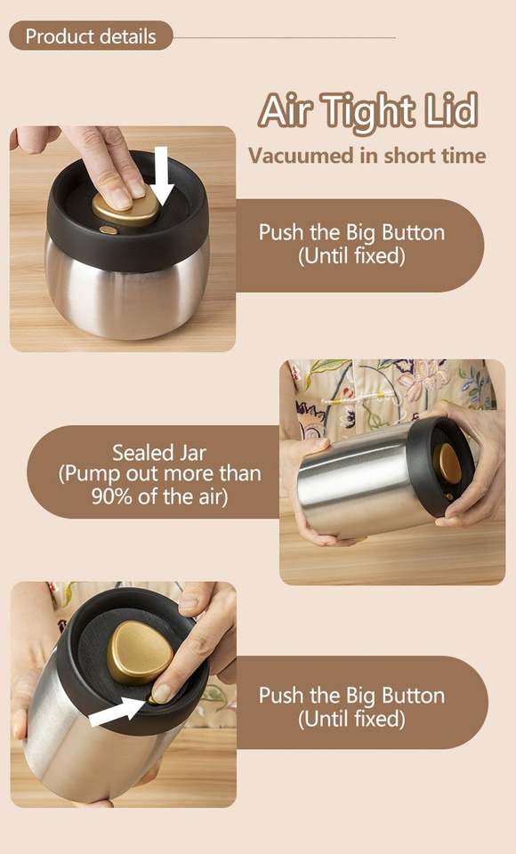 press type stainless steel vacuum container set