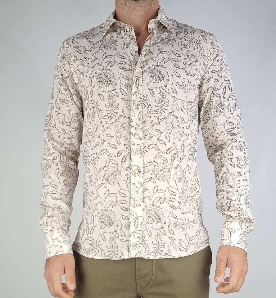 The Black Moustache Brand Men Clothing Barack Linen Maori Shirt Long Sleeve Printed Shirt In Viscose/Linen Fabric