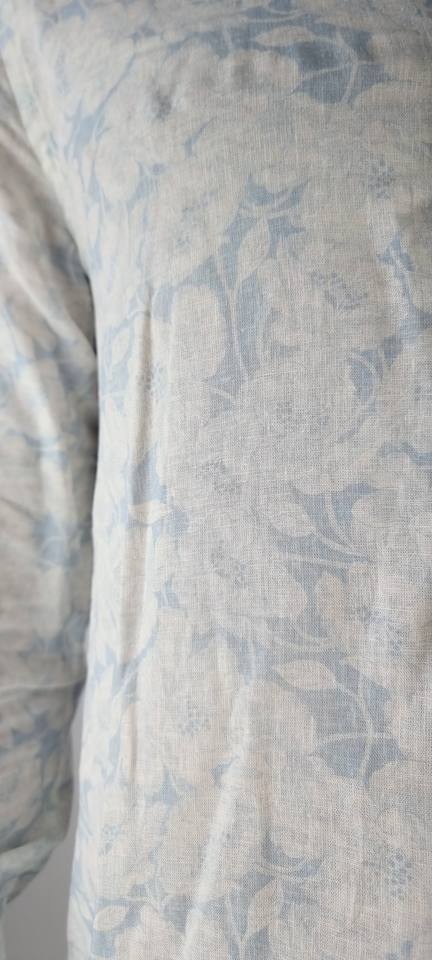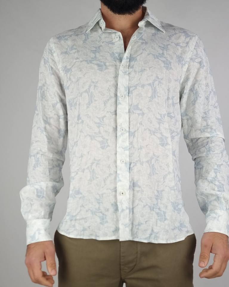 The Black Moustache Brand Men Clothing Barack Linen Blue Japan Shirt Long Sleeve Printed Shirt In Viscose/Linen Fabric