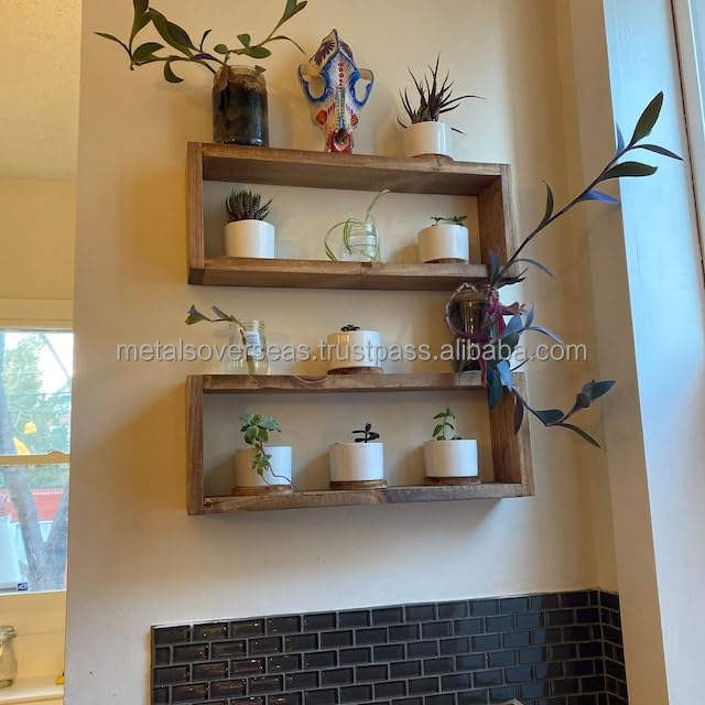 Cafe Long Pine Wood European Style Hand Carved Wall Decor Plant Shelf Floating Shelves for Home & Garden (2 Pcs)